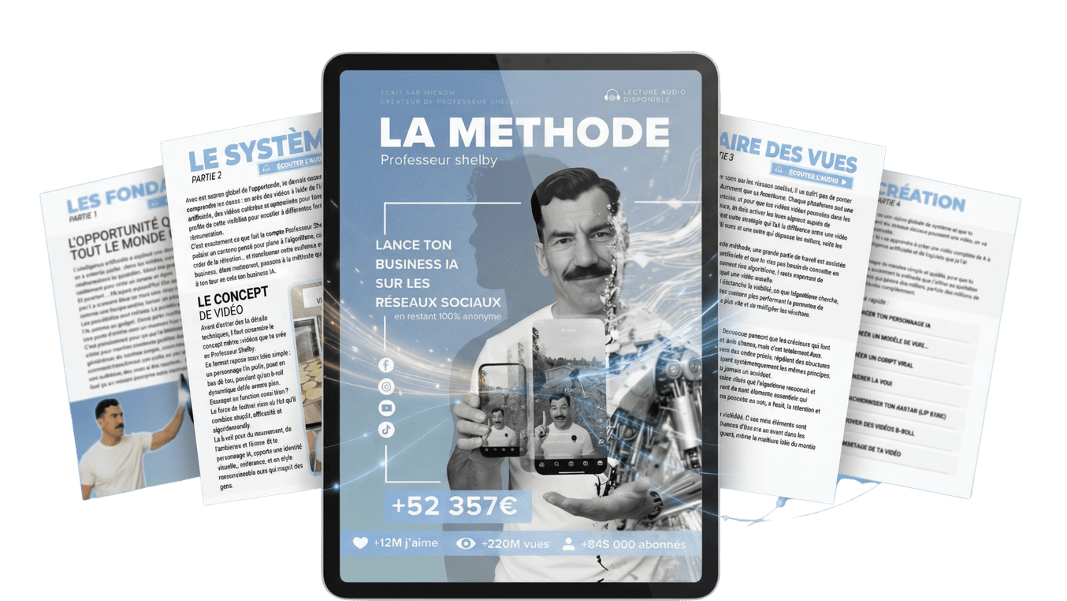 Je te dévoile ma méthode étape par étape dans un guide structuré de plus de 185 pages. Tu découvres concrètement comment j’utilise l’intelligence artificielle pour créer du contenu et générer un revenu régulier, afin que tu puisses reproduire le même système de ton côté.